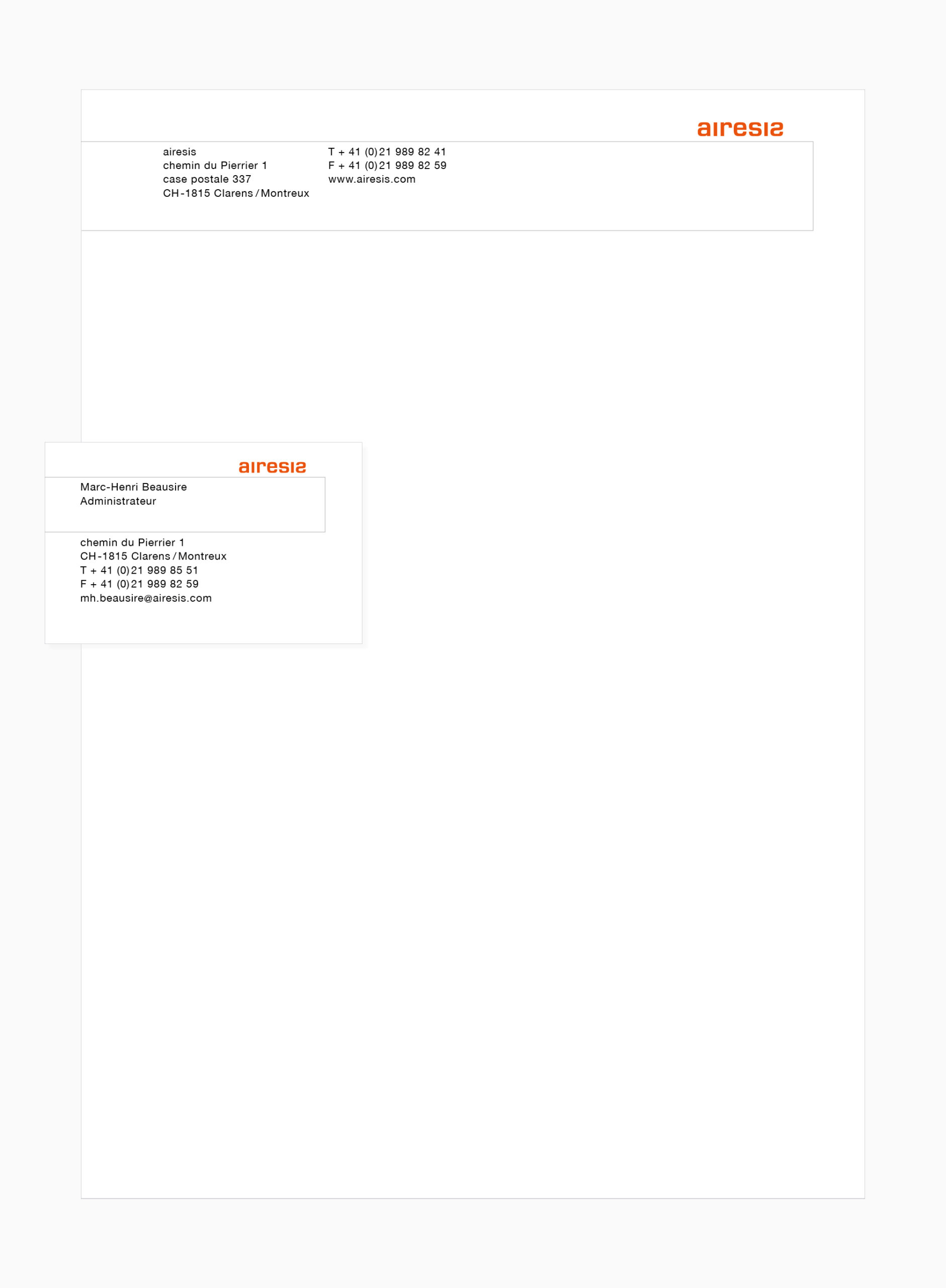 Fondée en 2006, airesis est une société d’investissement basée à Montreux, en Suisse. Son nom est inspiré du terme grec «hairesis» qui signifie «choix, préférence pour une idée ou pensée». Partant de cette étymologie, cette jeune société devait encore créer l’expression visuelle du nom qu’elle s’était choisie.