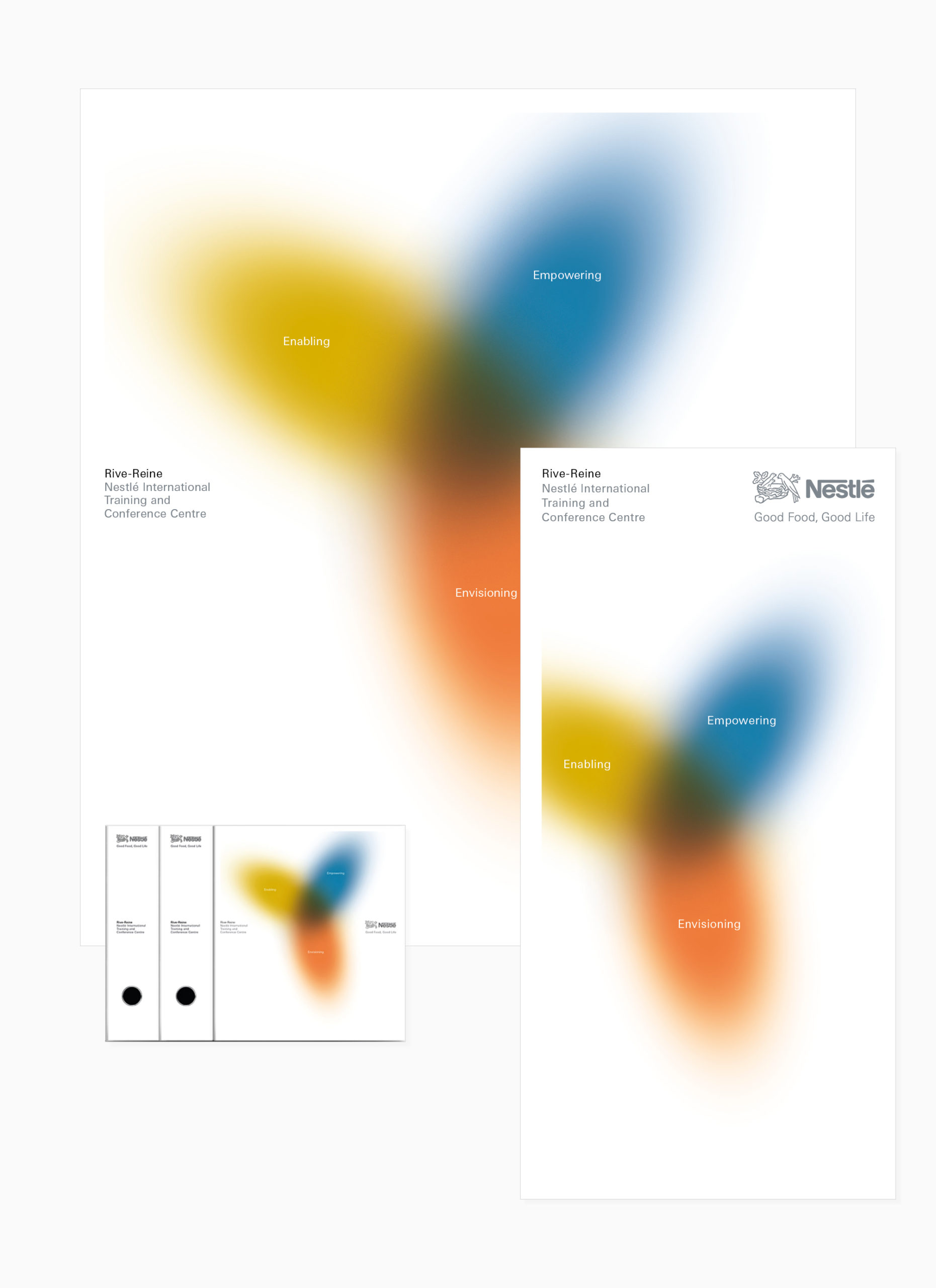 Le slogan «Enabling, Empowering, Envisioning» est présenté sous forme graphique, par des ellipses et des couleurs donnant une impression immédiate de la performance. Ce visuel original et dynamique a été décliné sur tous les documents destinés aux participants.